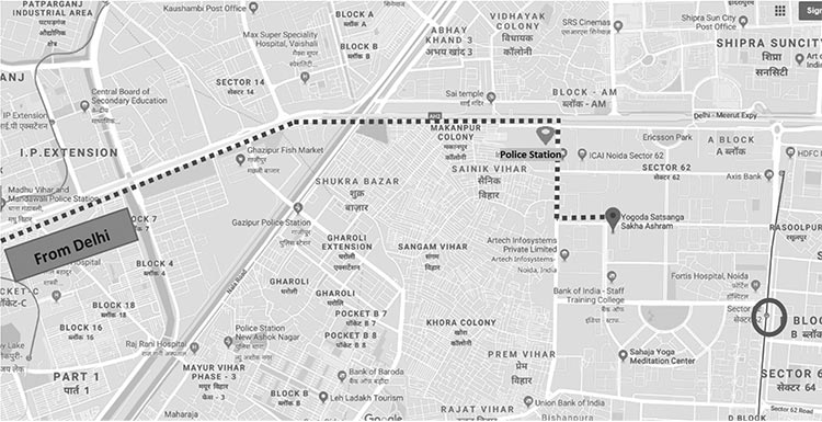 ROUTE MAP for YOGODA SATSANGA SAKHA ASHRAM, NOIDA