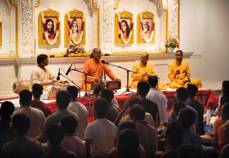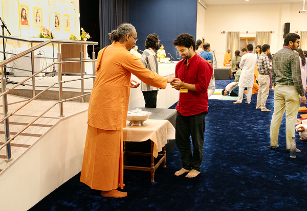 The Open House allowed young sadhaks to interact informally with Swamijis amidst the radiant glow of diyas. Personal moments deepened bonds of guidance and fellowship.