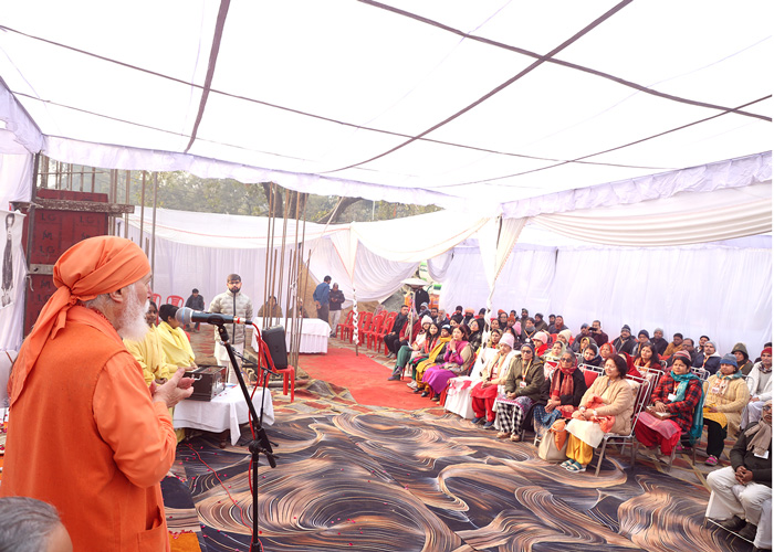 The Prabhat Feri was followed by an hour-long programme in which around 225 people were in attendance, including 150 devotees and 75 guests and visitors. Some senior government officials were also present. A decorated pandal was set up to celebrate this special occasion.