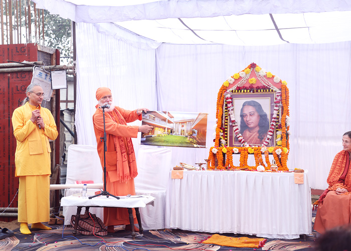 This first-ever public celebration of Gurudeva Paramahansa Yogananda’s Janmotsav at the site of his birth was made possible after the state government’s acquisition of the property and a public announcement last year that a shrine is being constructed on the site to honour the great Guru’s life and work. This shrine will be maintained and operated by Yogoda Satsanga Society of India. When completed, it will be a beautiful pilgrimage site for the devotees and friends of Paramahansa Yoganandaji, and will feature a special shrine room constructed in part from bricks collected from the original house that existed on this site; a museum; an audio/video presentation room; and a large meditation hall.
