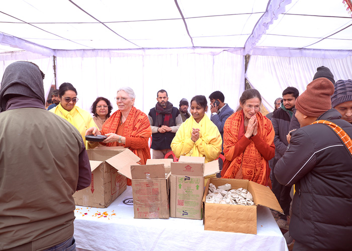The YSS/SRF sannyasis, sannyasinis, brahmacharis, and brahmacharinis distributed prasad to more than 400 attendees.