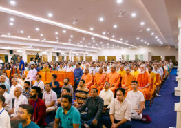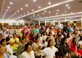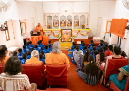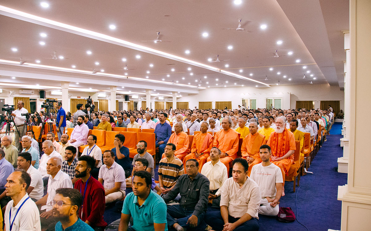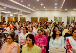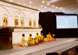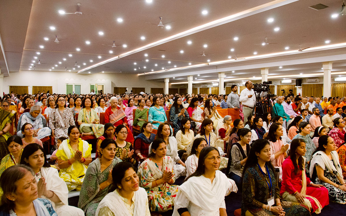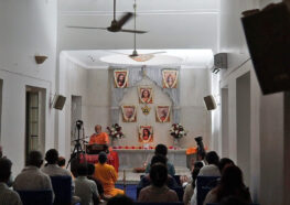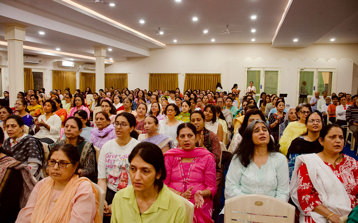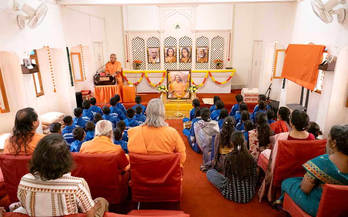- Swami Smaranananda gives an inspiring introduction at the beginning of the event at YSS Noida ashram.