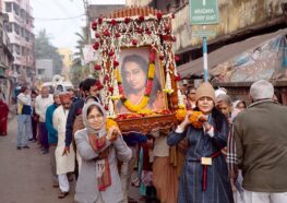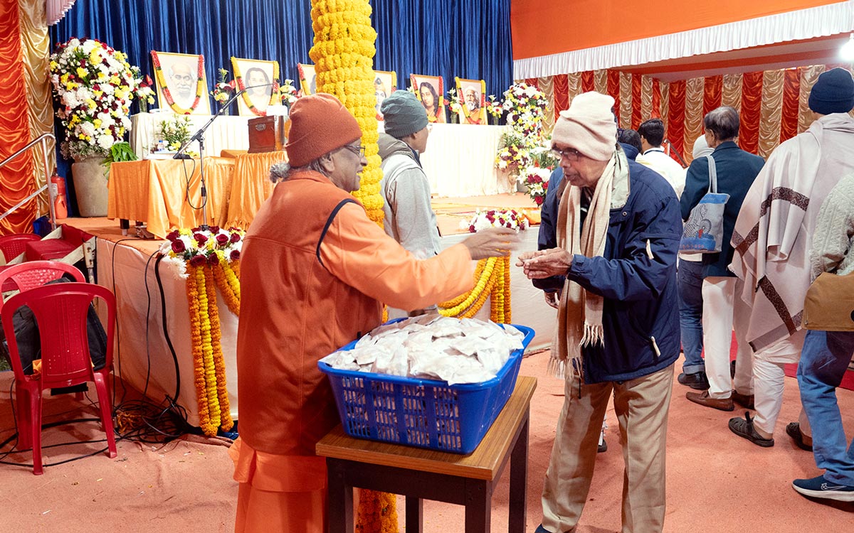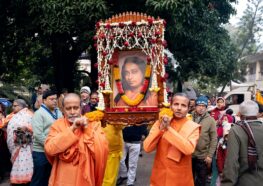- The morning of Gurudeva Paramahansa Yogananda’s Janmotsav begins with a prabhat feri through the ashram neighbourhood in Dakshineswar with sannyasis leading the procession…