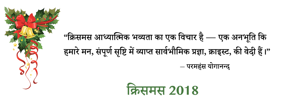 अपनी आवश्यकताओं और चाहतों से परे अपनी चेतना को विस्तृत करने की गहन प्रेरणा ईश-प्रेम से भरे हृदय की सहज बाढ़ से मिलती है। जीसस के जीवन में व्याप्त क्राइस्ट प्रेम का स्रोत अक्षय था। इसलिए परमहंसजी हमें इस पवित्र समय में लम्बे, गहरे ध्यान के लिए समय निकालने का आग्रह करते थे। आपकी आत्मा के भित्तिविहीन मन्दिर के पावन मौन में, ईश्वर आपके पास आनंद, शांति और असीमित प्रेम के रूप में आते हैं और उनके समग्र समावेशी चैतन्य स्पर्श से आपको अलगाव के अवरोध विलीन होते प्रतीत होंगे; आपके परमात्मा और अन्य आत्माओं के साथ शाश्वत सम्बंध व्यक्त होने लगेंगे। उस आंतरिक जागृति से तनिक सी भी प्रबुद्ध प्रत्येक आत्मा स्वतः ही एक अधिक सामंजस्य पूर्ण विश्व में सहयोग करने लगती है। हमारे गुरु के शब्दों में उनका प्रेमपूर्ण आशीर्वाद ग्रहण करें “आपका क्रिसमस अत्यंत प्रफुल्ल हो और आपको वह महानतम उपहार प्राप्त हो जिसकी कोई आपके लिए कामना कर सकता है — आपके हृदय में क्राइस्ट भाव की अनुभूति। आप उनकी उपस्थिति को, क्रिसमस दिवस और नव वर्ष के प्रत्येक दिवस पर अनुभव करें। प्रकाश का अद्भुत उपहार ग्रहण करने हेतु अपने हृदय को खोलें।”