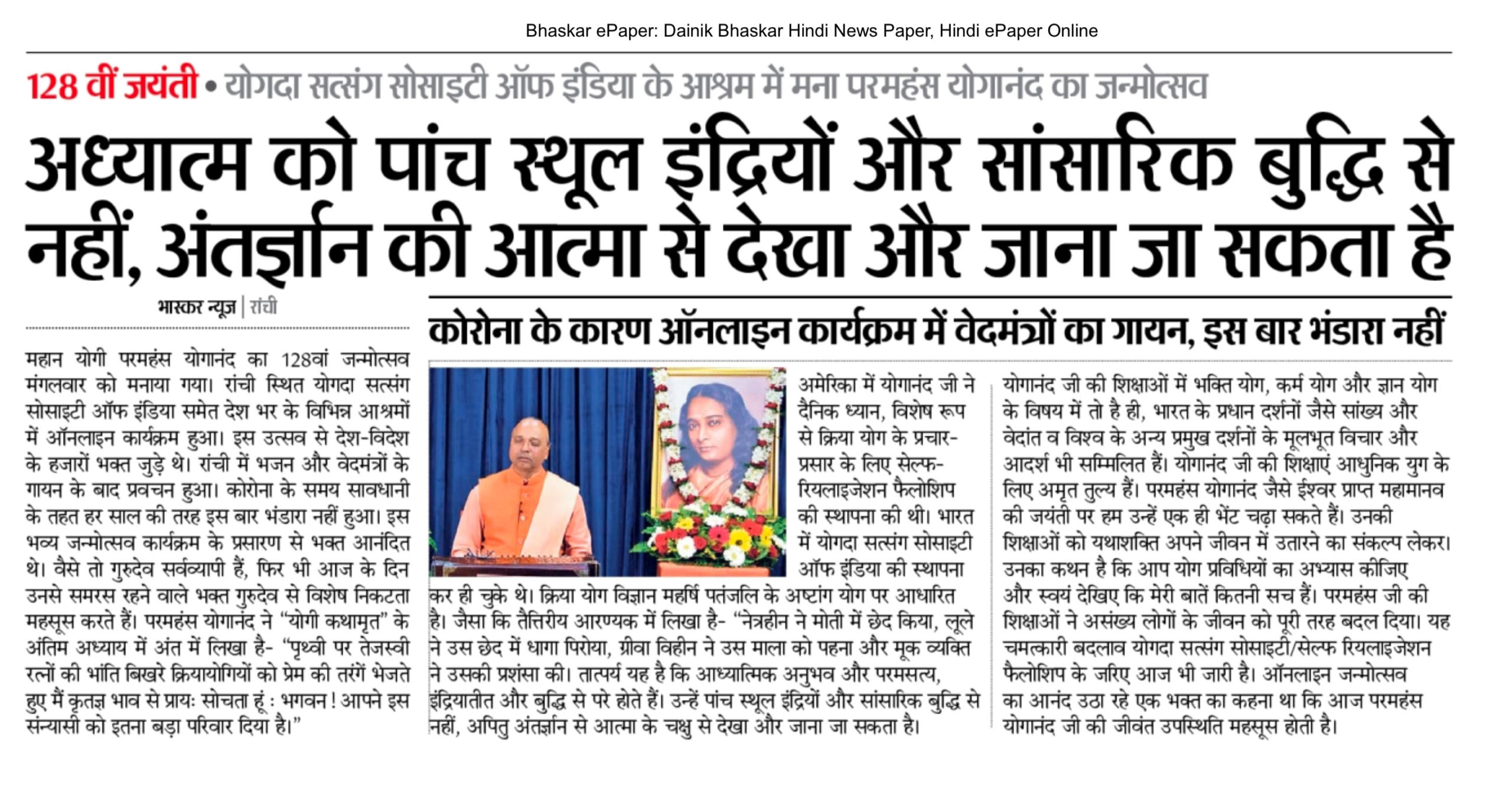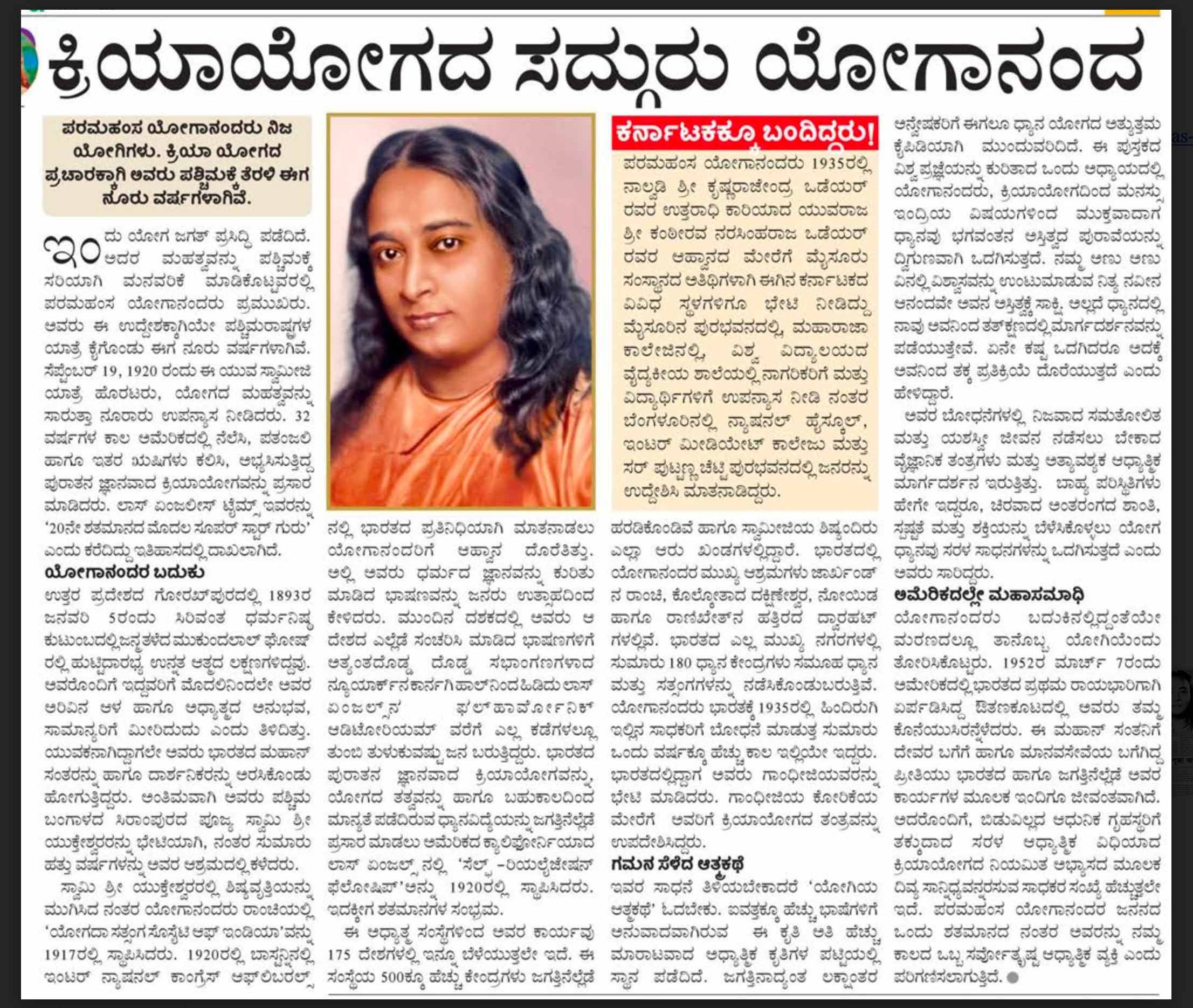 उनकी आत्ममुक्ति हेतु क्रिया योग की शिक्षा आज भी दुनिया भर में फैल रही है। वर्तमान महामारी के दौरान, योगानन्दजी की शिक्षाएं और भी अधिक प्रासंगिक हो गई हैं, जिससे इस तरह के अभूतपूर्व समय में आवश्यक सुरक्षा और सांत्वना मिल रही है।