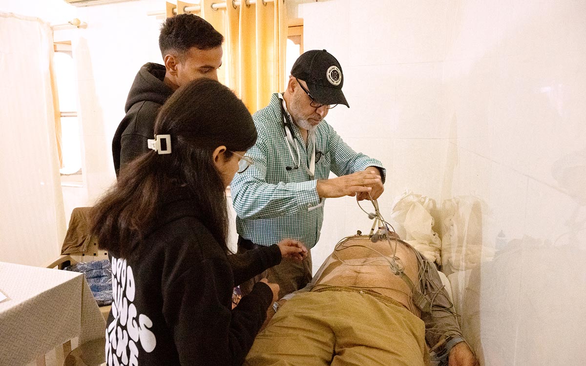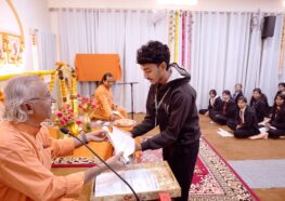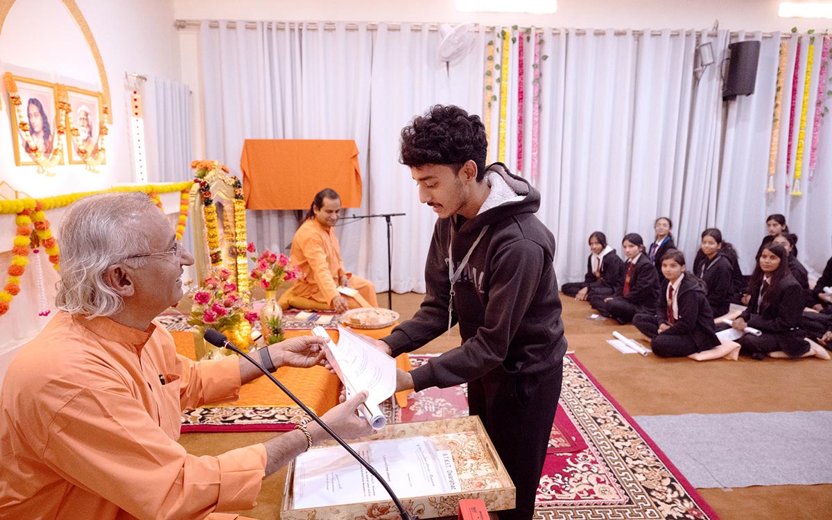 - ద్వారాహాట్లోని బీ.టీ.కే.ఐ.టీ. కళాశాలకు చెందిన విద్యార్థి వాలంటీర్లకు శిబిరము యొక్క మార్గదర్శక సూత్రాలను వివరిస్తున్న స్వామి ధైర్యానంద.
